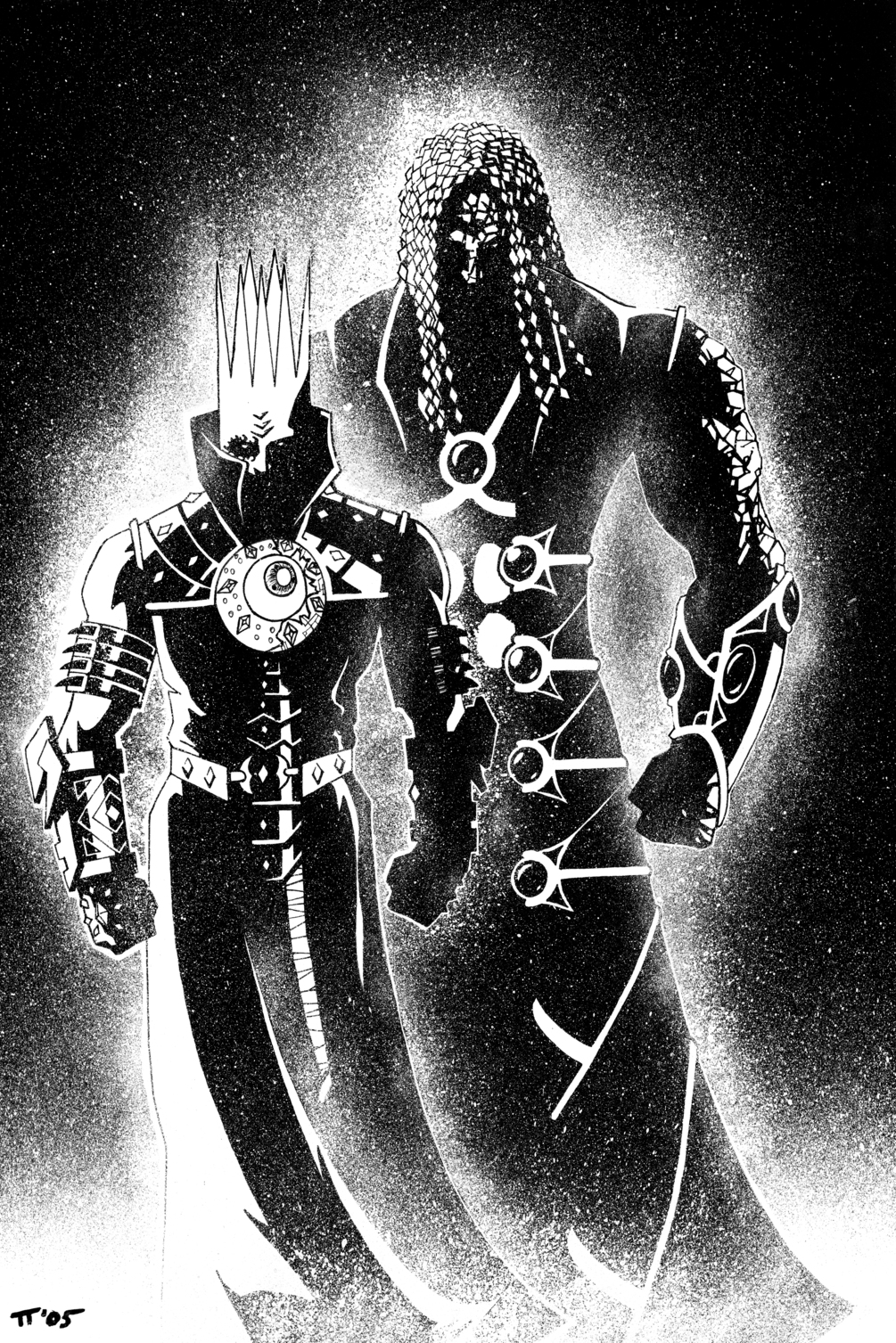 Featured here are Keeper, and his enemy, Decicrys. The former was forged in metallic skin, and the latter born of royal rock & crystalline.